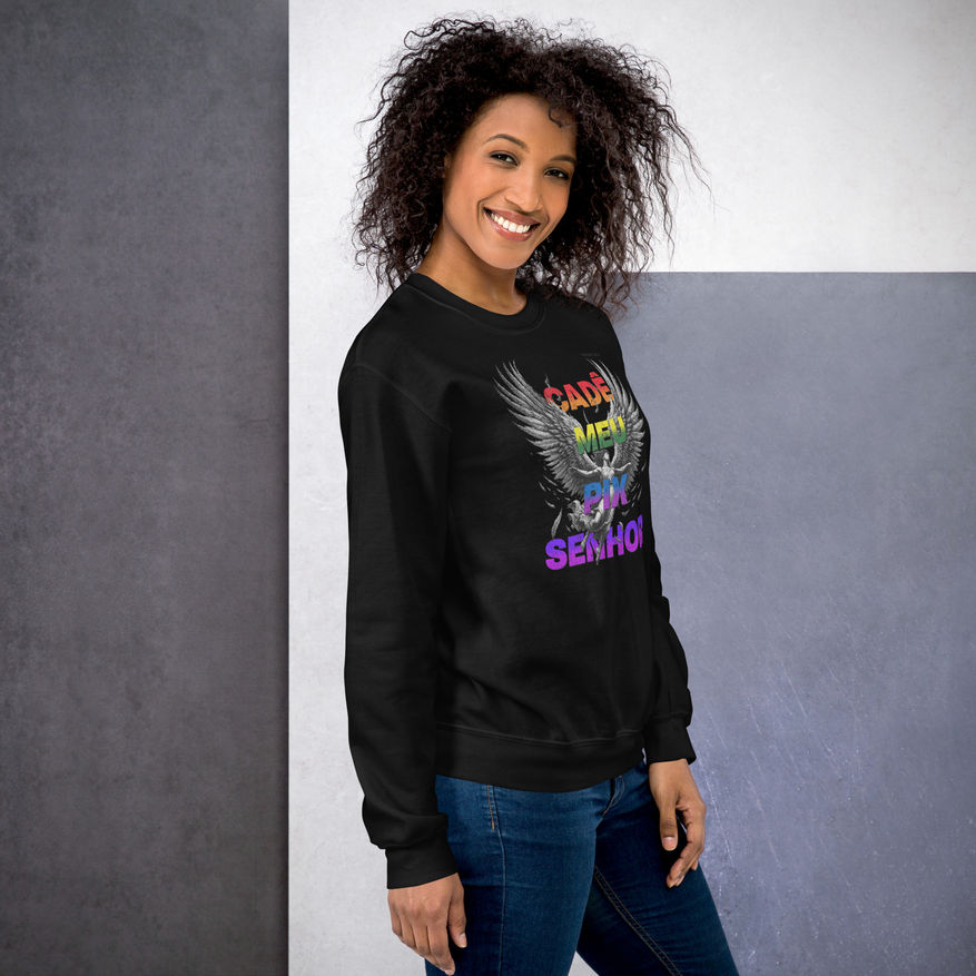 O que dizer de um anjo celestial com um olhar que implora aos céus (ou talvez ao seu celular), acompanhado da inconfundível e hilária frase: "Cadê Meu Pix, Senhor".